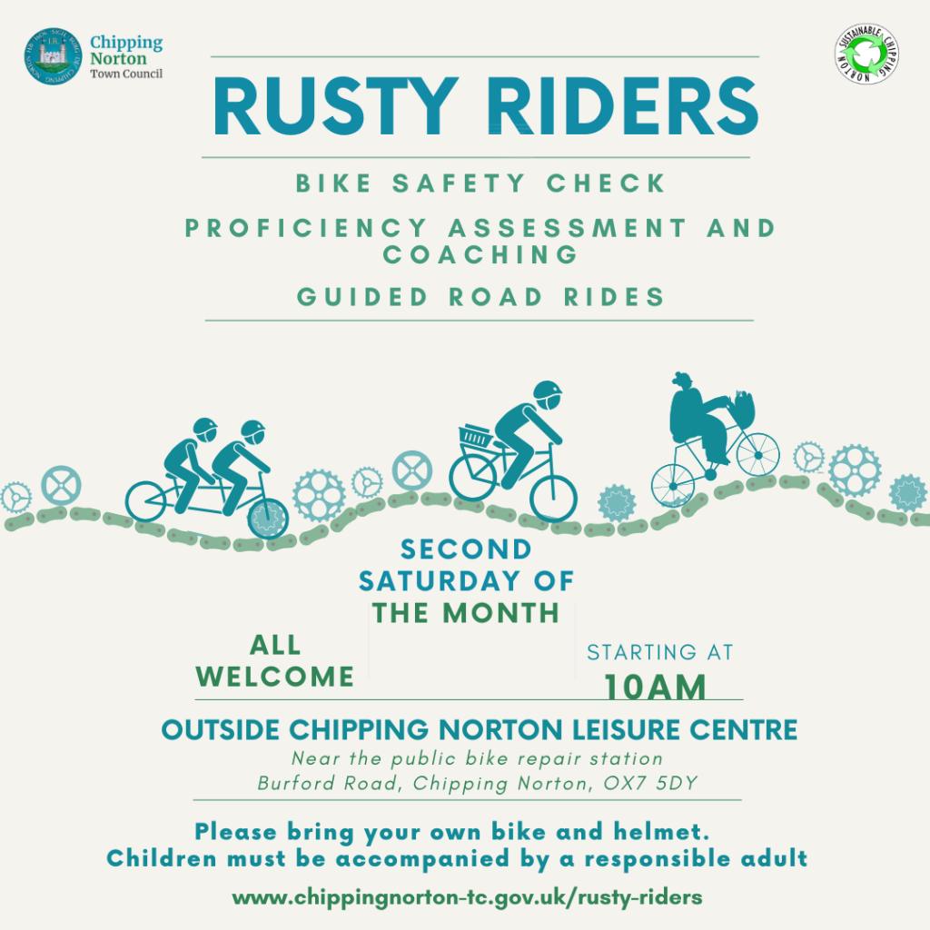 The Rusty Riders events are continued to be supported by ‘Sustainable Chipping Norton’ and ‘British Cycling’ where it’s also possible to preregister (optional for participants) on link: https://www.letsride.co.uk/.