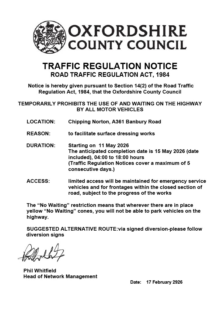 Temporary Traffic Regulation Order – S14 Road Traffic Regulation Act 1984