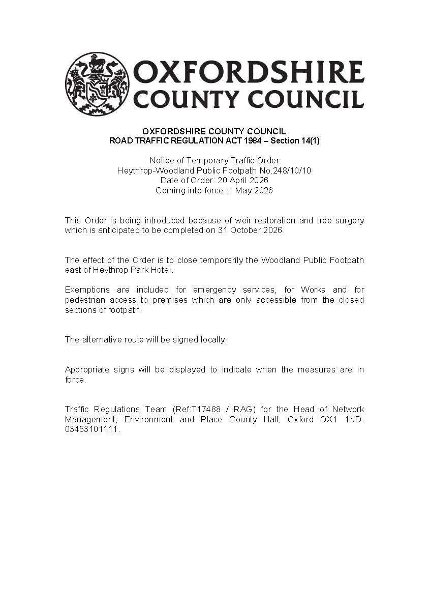 Temporary Traffic Regulation Order – S14 Road Traffic Regulation Act 1984